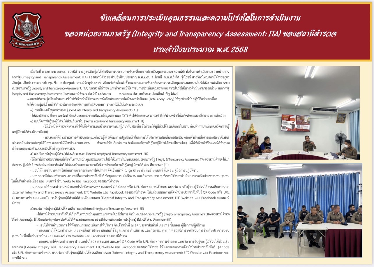 วันที่ 1 มกราคม 2568 พ.ต.ท.มนัส พรมภักดี สวป.สภ.เนินกุ่ม (หัวหน้างานอำนวยการ) ได้ดำเนินการตรวจสอบทรั