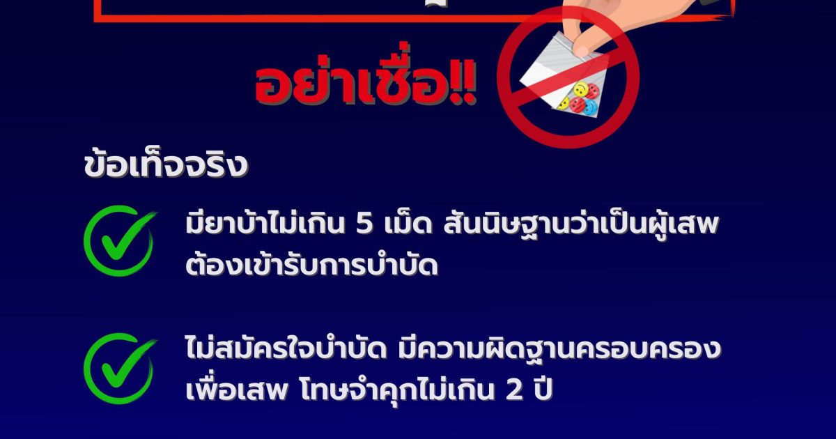 ครอบครองยาบ้าไม่เกิน 5 เม็ด ไว้เพื่อเสพไม่ผิดกฎหมาย เป็นข้อมูลเท็จ![]()