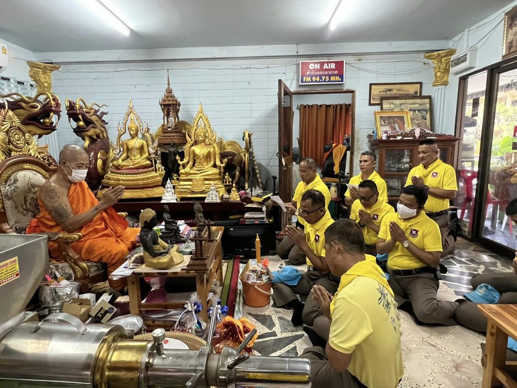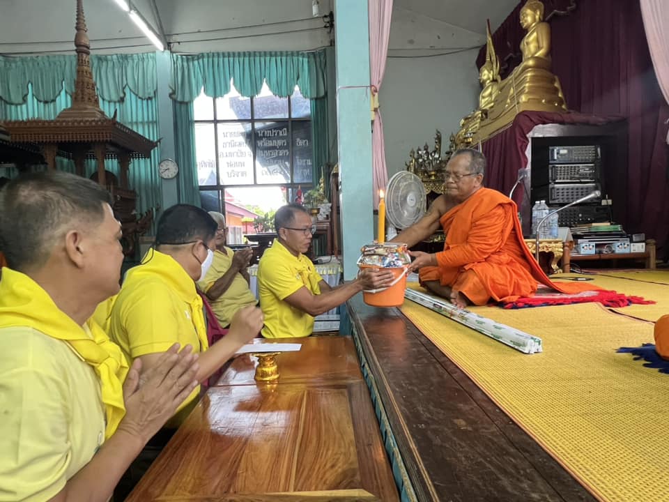 ถวายเทียนพรรษา หลอดไฟ และสังฆทานพร้อมทั้งปัจจัย ถวายแด่พระสงฆ์