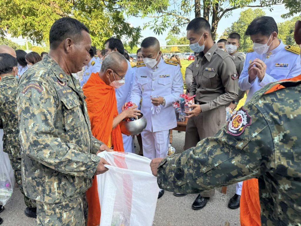 ร่วมพิธีทำบุญตักบาตร(ข้าวสารอาหารแห้ง) พิธีเจริญพระพุทธมนต์และพิธีวางพวงมาลา