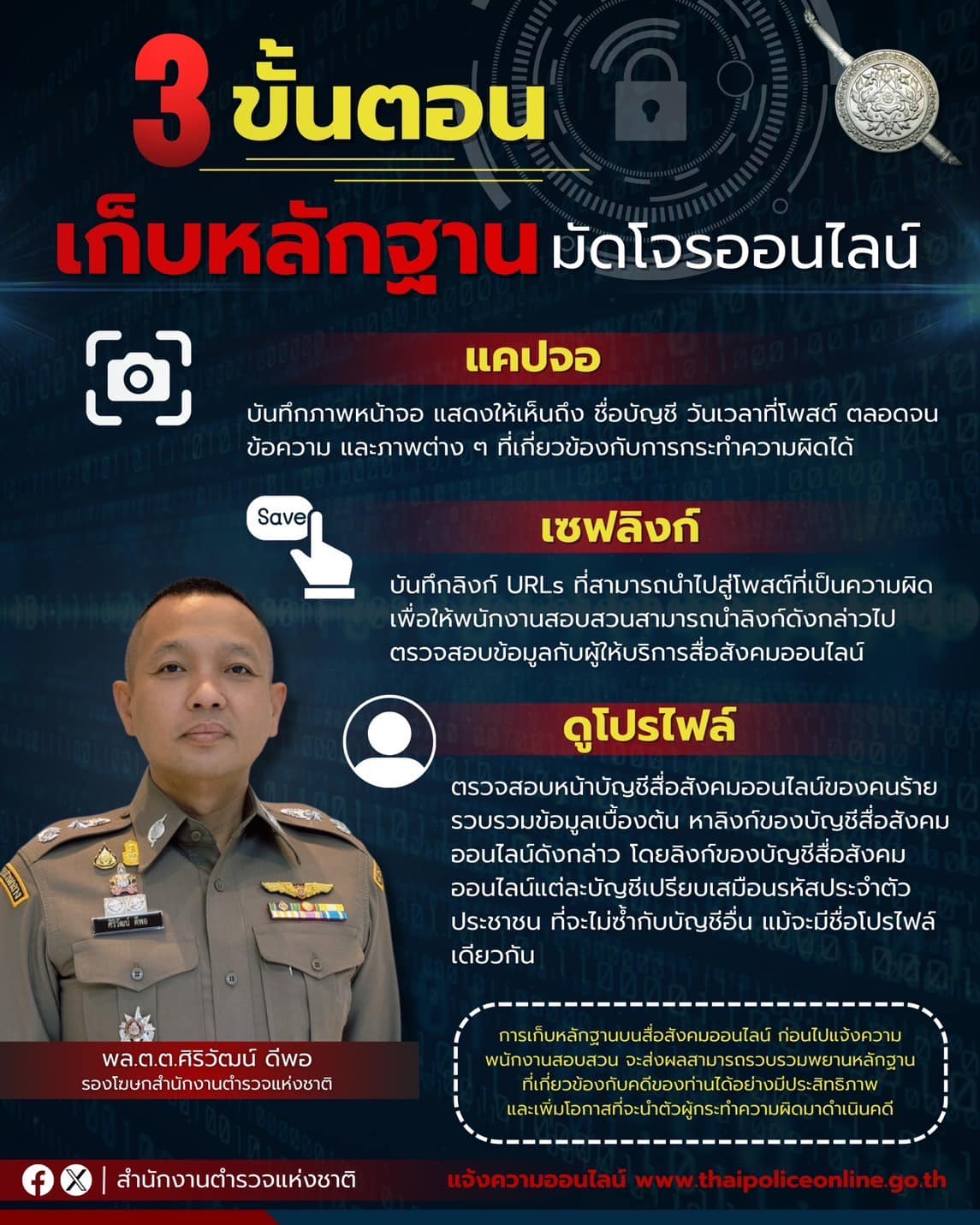 “เซฟลิงก์” หรือ การบันทึกลิงก์ URLs ที่สามารถนำไปสู่โพสต์ที่เป็นความผิด เพื่อให้พนักงานสอบสวนสามารถน