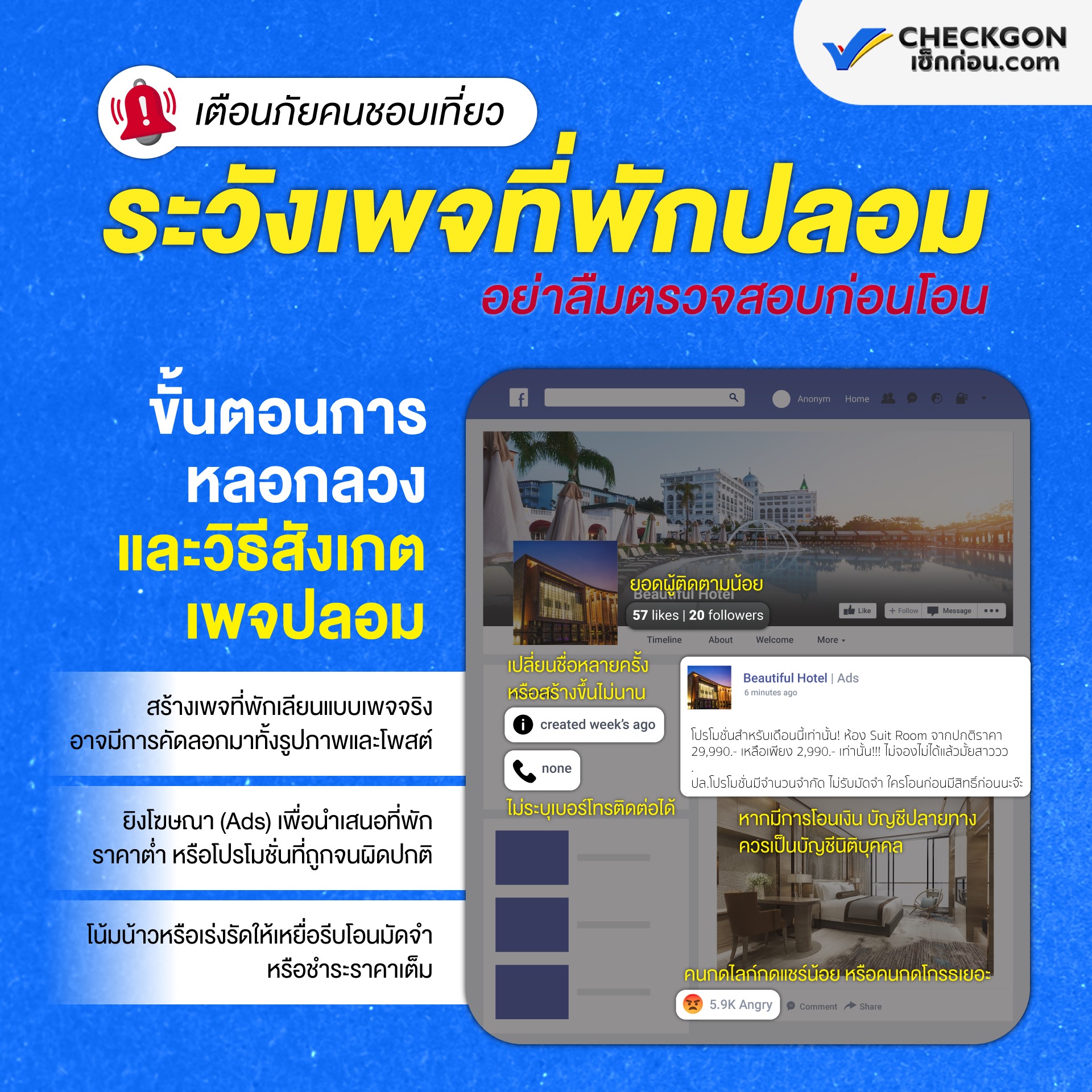 เตือนภัยคนชอบเที่ยว ระวังเพจที่พักปลอม !.ในช่วงหยุดยาวที่ผ่านมานับว่าเป็น High season หรือช่วงที่ทุก