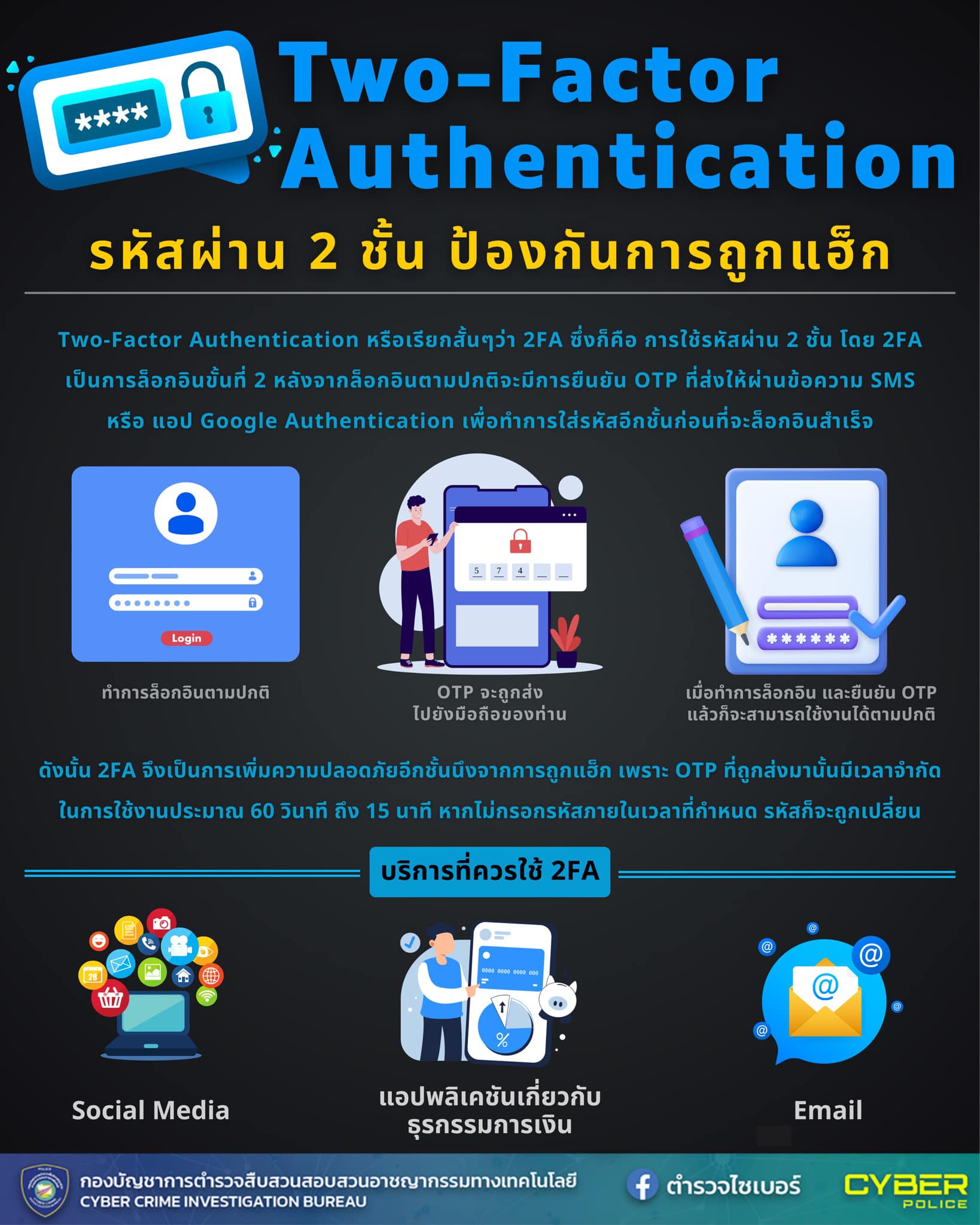 Two-factor authentication หรือเรียกสั้นๆว่า 2FA ซึ่งก็คือการใช้รหัสผ่าน 2 ชั้น โดย 2FA เป็นการล็อกอิ